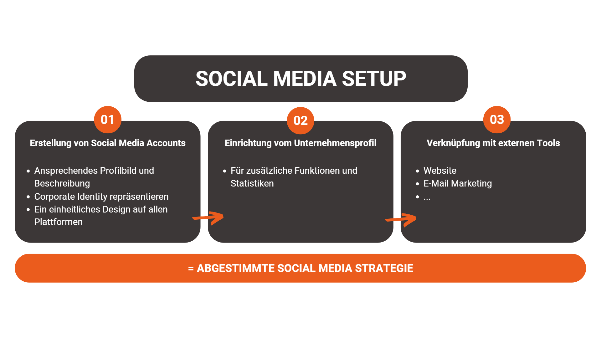 Um mit Social Media Marketing zu starten, ist es unabdinglich, ein solides Social Media Setup zu haben. Dazu gehören die Erstellung von Social Media Accounts, die Einrichtung von Unternehmensprofilen und die Verknüpfung mit externen Tools. Allem voran geht zunächst eine abgestimmte Social Media Strategie, mit der Du identifizierst, welche Plattformen am besten zu Deinem Unternehmen passen und auf welchen Plattformen Deine Zielgruppe aktiv ist.