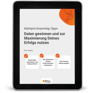 Du möchtest Deine Daten optimal nutzen und in aussagekräftige Erkenntnisse verwandeln? Unser E-Book "Verwandle Daten in Wissen mit HubSpot Reportings!" bietet Dir genau die Informationen, die Du brauchst, um datengesteuerte Entscheidungen zu treffen und Dein Geschäft zum Top Player zu machen.